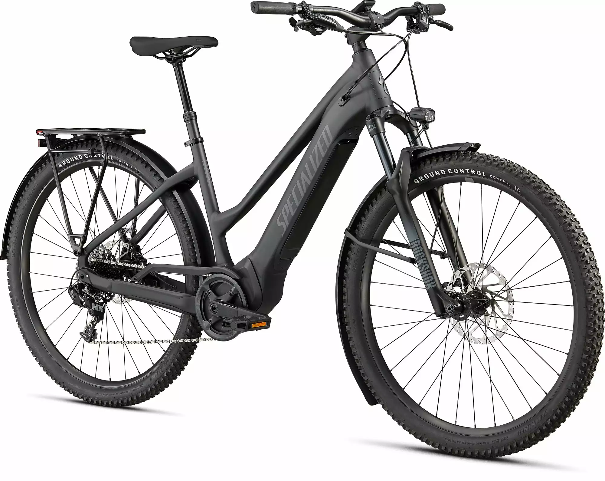 Varustettu DRYTECH lokasuojilla, LED-etu- ja takavaloilla sekä 27 kg:n kapasiteetin takatelineellä. Tarakka on yhteensopiva lasten istuinten kanssa, ja pyörä on mitoitettu vetämään myös perävaunua.